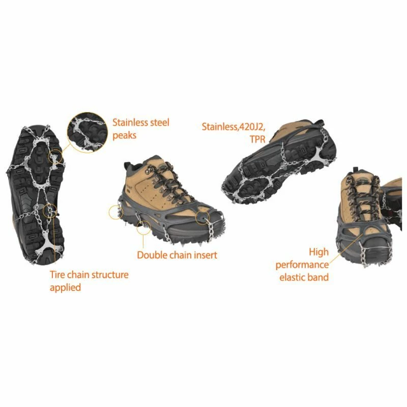 Avec ses chaines et pointes en acier inoxydable, la Chaine Snowline Pro de Snowline est idéale pour les randonnées hivernales. Tout terrain, les chaines de Snowline résiste à des températures allant jusqu’à -60 degrés. Les pointes en acier font 1 cm de long et s’agrippe aisément sur les sols verglacés. La structure des chaines est en élastomère pour une adaptation optimale sur vos chaussures, que cela soient des chaussures de sports ou des après-skis volumineux.
